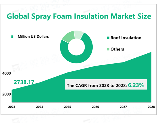 According to Global Market Monitor, the global spray foam insulation market size was $2738.17 million in 2023 with a CAGR of 6.23% from 2023 to 2028.