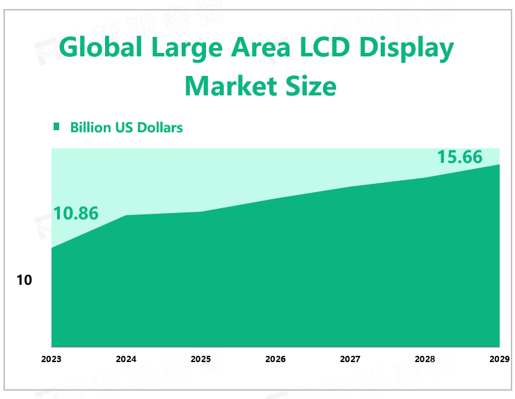 According to Global Market Monitor, the global large-area LCD market size will reach $10.86 billion in 2024 and is expected to grow to $15.66 billion by 2029.