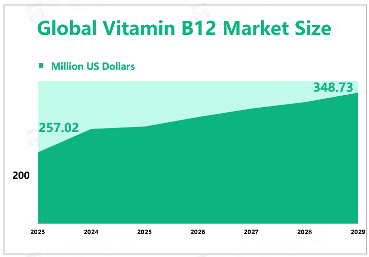According to Global Market Monitor, the global Vitamin B12market size will reach $257.02 million in 2024 and is expected to grow to $348.73 million by 2029.