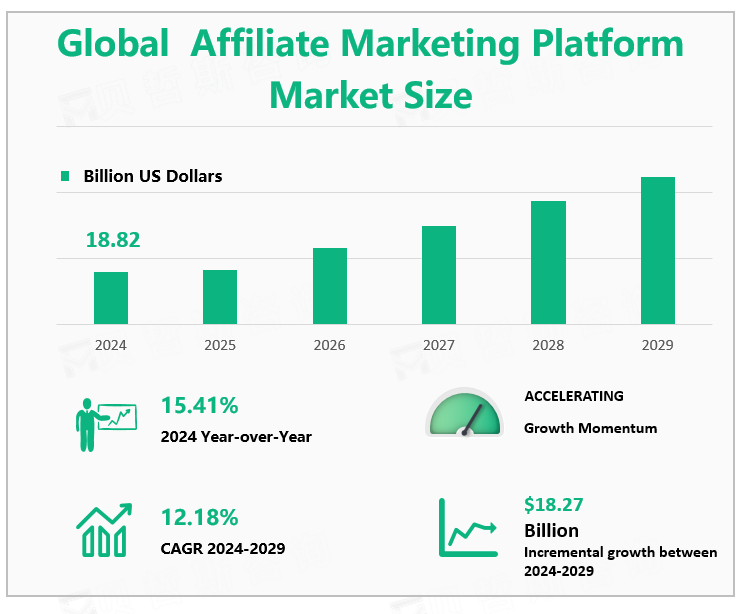 According to Global Market Monitor, the global affiliate marketing platform market size will be $18.82 billion in 2024 with a CAGR of 12.18% from 2024 to 2029.