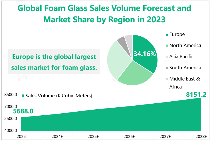 Global Foam Glass Sales Volume Forecast and Market Share by Region in 2023