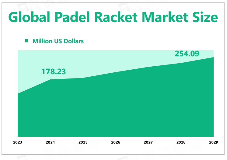 According to Global Market Monitor, the global padel racket market size is $178.23 million in 2024 and is expected to grow to $254.09 million by 2029.