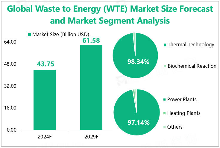 In recent years, waste to energy technology has been continuously advancing, and the global waste to energy market is experiencing significant growth and showing broad prospects. According to OUR research data, the estimated global waste to energy market size in 2024 is $43.75 billion, an increase of 7.37% from 2023, and is expected to continue growing to $61.58 billion by 2029. The CAGR for 2024-2029 is estimated to be 7.08%.